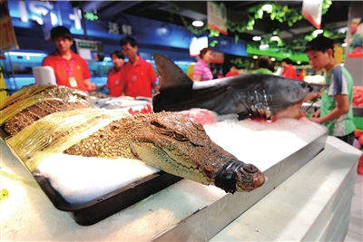 前天(21日),北京豐臺(tái)區(qū)鎮(zhèn)國(guó)寺北街永輝超市草橋店開(kāi)業(yè),在生鮮賣場(chǎng)公開(kāi)銷售一條兩米長(zhǎng)的鱷魚(yú),鱷魚(yú)一天內(nèi)被分部位訂走,此舉引發(fā)市民爭(zhēng)議。