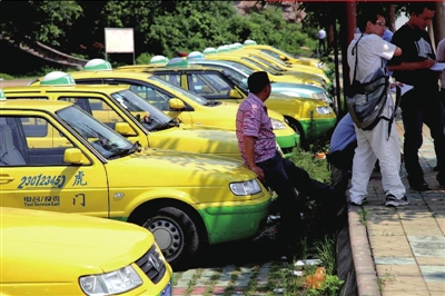 24日下午,東莞虎門威遠炮臺附近的一處空曠停車場,數(shù)十輛“黃的”整齊地停放在一起。的哥老黃接受采訪時說,他們是東莞市公共的士有限公司的司機,全公司在虎門營運的車輛約有200輛,當天全部閑放在虎門空曠地帶“趴窩”。原因是,從18日開始,虎門交通分局派出幾名社會人士充當稽查人員,對出租車進行明察暗訪,幾天內(nèi),東莞公共的士有限公司因不打表被罰的車輛就達30多輛!昂芏喽际潜蝗苏T導才沒有打表的!彼緳C們認為,交通部門此“暗訪”其實就是“釣魚”執(zhí)法。24日下午,東莞市交通局虎門分局門口擠滿了前去辦理處罰手續(xù)的出租車司機。