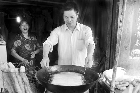 “每天都用新鮮的油。提高成本我不怕,要讓客人放心才行!背匚纳f(shuō),為此,他做的油條成本相對(duì)較高,每一根的利潤(rùn)不超過(guò)3毛錢(qián)。所以得賣(mài)完最后一根才能回家。