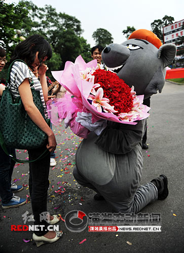 “嫁人要嫁灰太狼”,在網(wǎng)絡(luò)流行的這一句話(huà),6月4日在(湖南)株洲上演真實(shí)版。在樂(lè)隊(duì)的伴奏中,吳先生手捧鮮花扮演灰太狼向女朋友求婚。