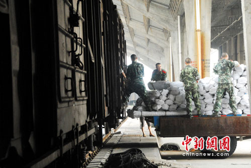 這次救災(zāi)物資緊急調(diào)運任務(wù)的順利完成,得到了武漢鐵路局、武警湖北總隊一支隊的大力支持。鐵路局在2小時內(nèi)就完成了車皮的配空,并運送到了指定地點;武警總隊出動了300多名官兵,20多臺卡車幫助搶運。在多方的共同努力下,5000頂救災(zāi)帳篷經(jīng)過不到10個小時的緊張裝運,提前發(fā)車。