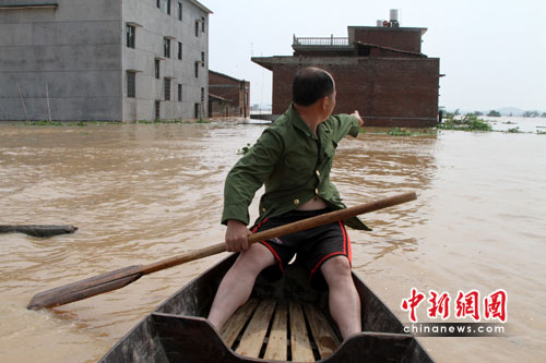 中新網(wǎng)撫州6月22日電(張見悅 艾永全 何柳斌)江西省第二大河撫河決堤之后,當?shù)鼐用衽c各處趕到的抗洪大軍一道,展開生死救援,在重災區(qū)羅針鎮(zhèn)梅家渡村,一位中年男子用自己家的小舢板來回數(shù)十趟,將100多鄉(xiāng)親從澤國中送到了公路高地。
