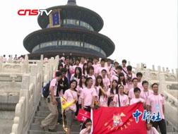 下午4:30分,主題聯(lián)歡活動(dòng)的演出部分正式拉開序幕,22名兩岸青年團(tuán)體代表依次拍掌并拉起手來,共同啟動(dòng)由兩岸青年代表的手掌印匯聚成的祥龍騰飛圖案。孫楠、劉謙、周杰倫、李宇春等眾多深受兩岸青年歡迎的演藝明星獻(xiàn)上了精彩的演出。和著熟悉的旋律,兩岸青年齊聲歌唱。