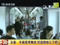 輕軌車(chē)廂里一對(duì)男女旁若無(wú)人大秀鋼管舞