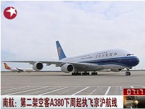 南航:第二架空客A380下周起執(zhí)飛京滬航線