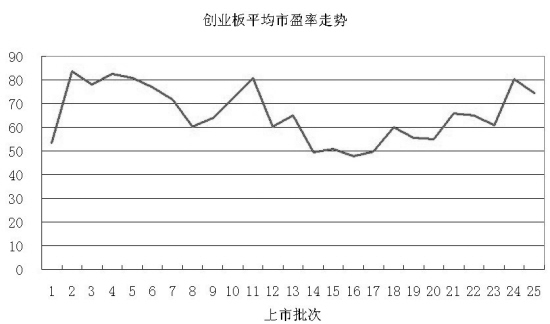 自創(chuàng)業(yè)板開(kāi)板以來(lái),對(duì)發(fā)行市盈率偏高的爭(zhēng)議仿佛沒(méi)有停止過(guò)。從統(tǒng)計(jì)數(shù)據(jù)來(lái)看,整個(gè)板塊的發(fā)行市盈率也的確比A股其他板塊高出一截。統(tǒng)計(jì)顯示,25批127只創(chuàng)業(yè)板股的平均發(fā)行市盈率高企65.01倍,遠(yuǎn)超中小板新股的51倍及主板新股的38倍。其中發(fā)行市盈率超過(guò)60倍的共計(jì)71股,占總量的56%。