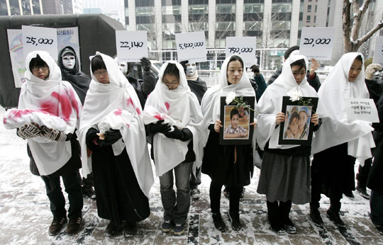 1月16日,韓國一些民眾聚集在首爾以色列使館前進行示威,幾位婦女手舉象征在戰(zhàn)火中喪生的兒童照片和玩偶,抗議以色列襲擊加沙。