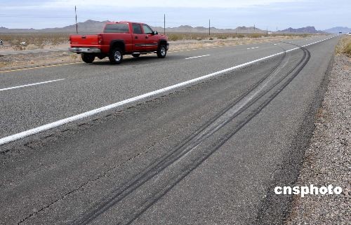 當(dāng)?shù)貢r(shí)間二月五日下午,中國旅游團(tuán)車禍遇難者家屬來到事故現(xiàn)場(chǎng)——美國亞利桑那州九十三號(hào)公路二十八英里處舉行悼念活動(dòng),寄托對(duì)親人的哀思。中新社發(fā) 張煒 攝