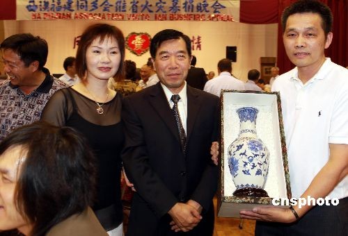 2009年2月15日,西澳中華會館文化中心,三百多位來自13個華人社團(tuán)的各界華人聚集一堂,舉辦“風(fēng)火無情人間有情”募捐晚會,為澳大利亞維多利亞州遭受2月7日起發(fā)生的嚴(yán)重山火災(zāi)害的災(zāi)民募捐。中國駐澳大利亞珀斯總領(lǐng)館李樹鋼總領(lǐng)事、西澳洲議長邁克沙德蘭、珀斯市議員劉怡心、捷拉等官員到場支持。中新社發(fā) 高周丹 攝