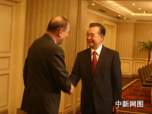 正在這里對(duì)歐盟總部進(jìn)行正式訪問的中國總理溫家寶,當(dāng)?shù)貢r(shí)間一月三十日上午在下榻飯店會(huì)見了歐盟理事會(huì)秘書長兼共同外交與安全政策高級(jí)代表索拉納(左)。雙方對(duì)中歐關(guān)系重要性均給予高度肯定。張朔 攝