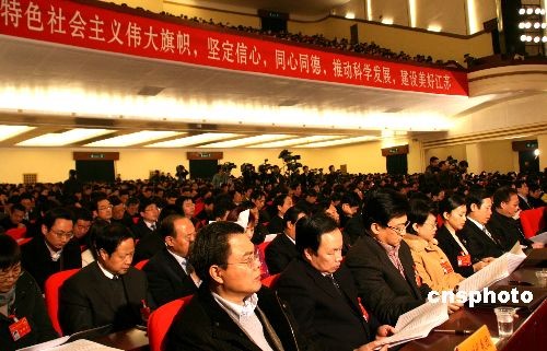 2月5日上午,江蘇省十一屆人大二次會(huì)議在南京人民大會(huì)堂開幕。江蘇省委書記、大會(huì)主席團(tuán)常務(wù)主席梁保華主持開幕式,省長(zhǎng)羅志軍代表江蘇省人民政府向大會(huì)作政府工作報(bào)告。中新社發(fā) 崔佳明 攝