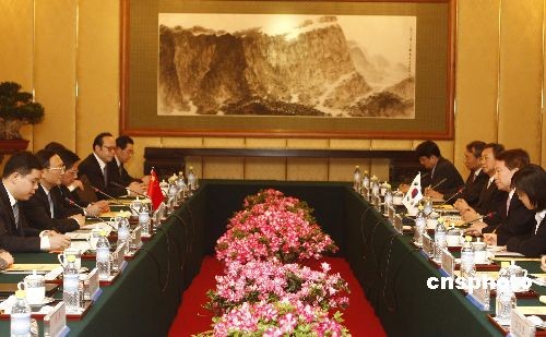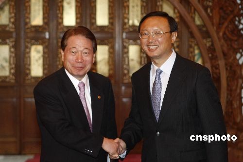 2月24日,中國(guó)外交部部長(zhǎng)楊潔篪在北京釣魚(yú)臺(tái)國(guó)賓館與韓國(guó)外交通商部長(zhǎng)官柳明桓舉行會(huì)談。中新社發(fā) 盛佳鵬 攝