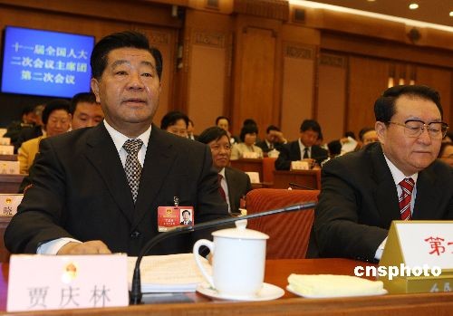 3月9日上午,十一屆全國人大二次會議在北京人民大會堂舉行第二次主席團(tuán)會議,主席團(tuán)成員賈慶林、李長春出席。中新社發(fā) 任晨鳴 攝