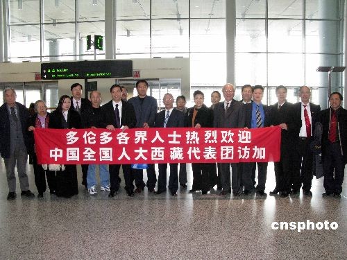 當?shù)貢r間三月二十日,結束在美國的訪問后,由五位在西藏成長和生活的全國人大代表組成的中國全國人大西藏代表團赴加拿大繼續(xù)訪問。在加拿大機場受到當?shù)馗鹘缛耸康臒崃覛g迎。二十日抵達多倫多數(shù)小時后,代表團舉行記者會,接受二十多家媒體四十多名記者的集體采訪,詳細回答記者的提問。中新社發(fā) 孫宇挺 攝