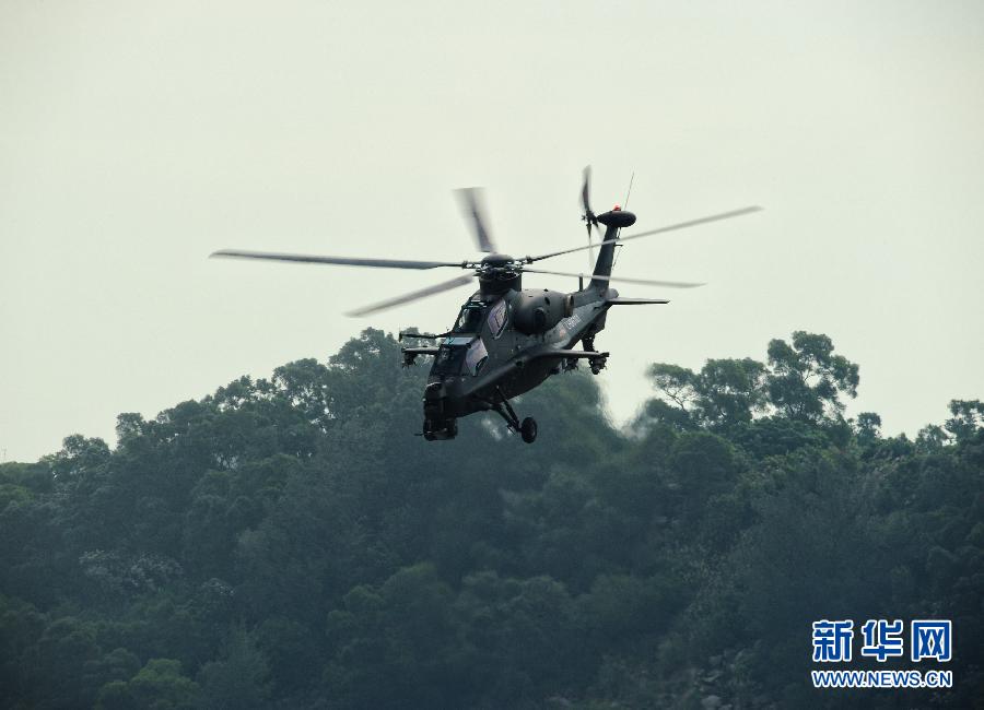 2012年11月11日,國產武直10武裝直升機在珠海三灶機場進行飛行訓練。當日,我國自主研制生產的武直10武裝直升機在珠海三灶機場進行了約20分鐘的適應性飛行訓練,做出倒飛、萊維斯曼機動、高速大角度俯沖、低空小半徑盤旋等動作,展現(xiàn)出其優(yōu)異性能,引來航展現(xiàn)場觀眾頻頻喝彩。楊光 攝 圖片來源:新華網(wǎng)