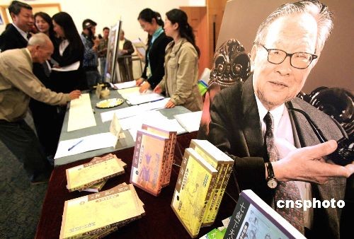二月十六日,為緬懷上月底病逝的武俠小說宗師梁羽生,香港《大公報》和天地圖書在香港中央圖書館舉辦座談會。著名武俠小說作家金庸、武俠小說研究專家兼教授鄺健行、電影導演張鑫炎、對聯(lián)專家楊瑞生,天地圖書副總編輯孫立川等就梁羽生在當代文學、詩詞、楹聯(lián)等方面的造詣和成就以及生平逸事趣聞,與其著作愛好者和公眾座談分享。圖為展出的梁羽生部分作品。中新社發(fā) 張勤 攝