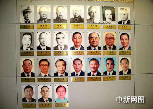 國民黨軍隊歷史文物館現(xiàn)正展出的臺歷任“國防部長”照片。