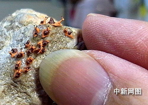 圖為臺(tái)灣著名微雕家陳逢顯創(chuàng)作的世界最小“蝸!比海恐晃伵5臍、觸角、眼睛兼具,有形有神。中新社記者 陳立宇 攝