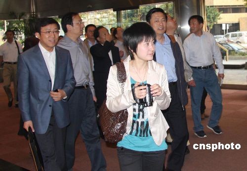 三月二十五日,由十七家大陸中央媒體負(fù)責(zé)人組成的訪問團(tuán)拜訪臺灣《聯(lián)合報》。圖為訪問團(tuán)步入《聯(lián)合報》報社大樓。中新社發(fā) 耿軍 攝