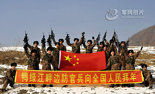 在春節(jié)即將到來之際,駐守在鴨綠江的吉林省軍區(qū)邊防某部官兵,以昂揚的斗志堅守崗位,用實際行動在哨位上歡度新年。圖為哨所官兵在巡邏路上,向全國人民拜年的情景。蔣德紅 報道