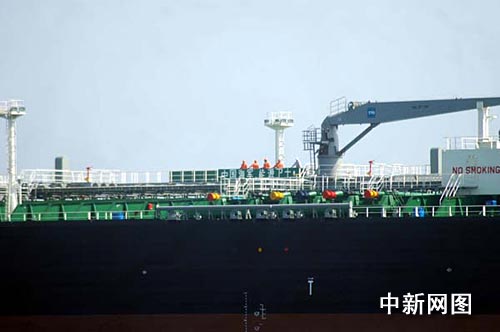 春節(jié)前夕,被護(hù)商船“凱達(dá)”號(hào)打出“中國(guó)海軍,能源衛(wèi)士!”標(biāo)語(yǔ)向護(hù)航官兵致敬。中新社記者 孫自法 攝
