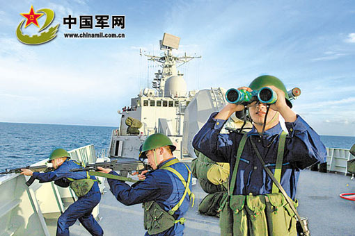 圖:“廣州”號導彈驅逐艦進行反海盜演練