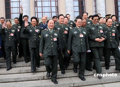 2009年3月12日上午,中國人民政治協(xié)商會(huì)議第十一屆全國委員會(huì)第二次會(huì)議圓滿完成各項(xiàng)議程后在人民大會(huì)堂閉幕。圖為軍隊(duì)政協(xié)委員集體走出人民大會(huì)堂。中新社發(fā) 宋健浩 攝