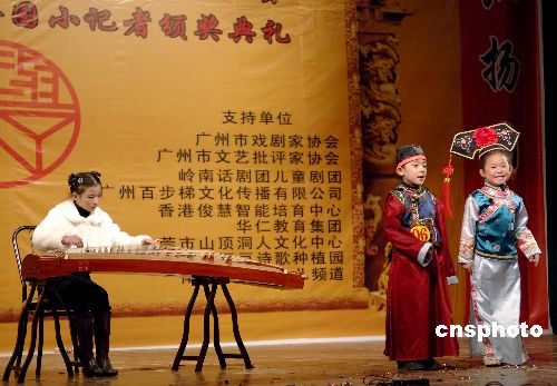 一月十七日,首屆廣東少兒國(guó)學(xué)朗誦大賽總決賽暨2008年度廣州“十佳”中國(guó)小記者頒獎(jiǎng)典禮在廣州舉行。來(lái)自香港、廣州、佛山、惠州等地的六十多名少兒選手參加,朗誦的國(guó)學(xué)內(nèi)容包括三字經(jīng)、論語(yǔ)、古代優(yōu)秀散文片段及唐詩(shī)、宋詞等。中新社發(fā) 劉衛(wèi)勇 攝