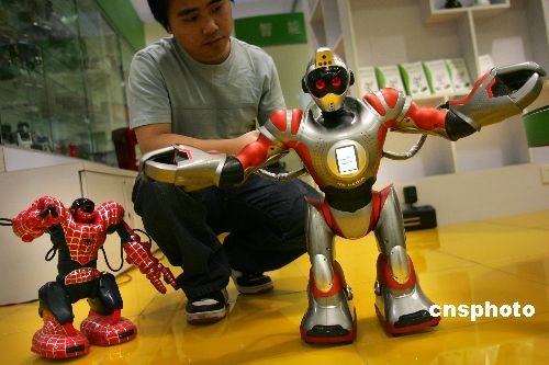 4月15日,北京首家機器人零售商店開業(yè)吸引顧客。該店位于中關村一電子商場內。據該店羅經理介紹,他們銷售的機器人有近百種,分為保潔型、娛樂型、教學型、家用型,價格從380元至58000元人民幣不等。保潔型機器人可每天定時清掃地面,自動躲避障礙物。娛樂型包括有機器人寵物、會跳舞的機器人等。教學型機器人一般用于高校計算機編程方面的教學。家用型機器人相對高端,臉龐分析系統(tǒng)可將陌生人的面容發(fā)送到主人手機上,具有“看家”功能,還能通過無線終端設備監(jiān)測家里老人的血壓脈搏等,發(fā)現(xiàn)問題會通知主人。中新社發(fā) 富田 攝