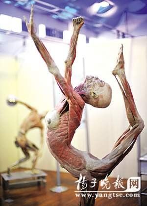 現(xiàn)場(chǎng)的講解員告訴記者,現(xiàn)在的標(biāo)本都是塑化技術(shù),這是上世紀(jì)70年代由德國(guó)人哈根思發(fā)明的,中國(guó)于2000年引進(jìn)。過去用福爾馬林浸泡的標(biāo)本易變色、易變形,保存時(shí)間也不長(zhǎng)。而塑化保存的標(biāo)本都是經(jīng)過了脫水、脫脂,所有現(xiàn)在我們所看到的都是肌肉組織,看起來也就更勻稱和美觀,而經(jīng)過這樣一項(xiàng)技術(shù),標(biāo)本可以保存500年之久,“可以稱得上現(xiàn)代木乃伊了!