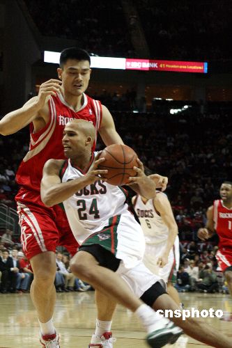 圖:姚明22分 火箭苦戰(zhàn)過關(guān)主場捕雄鹿