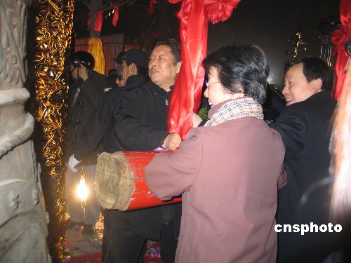 西安:一月一日凌晨,古城西安的南門(mén)城樓、大慈恩寺、小雁塔等地分別舉行了鳴鐘祈福活動(dòng)。圖為幾位普通市民在有著一千多年歷史的唐代小雁塔內(nèi)撞響祥鐘,祈福新年。中新社發(fā) 冽瑋 攝