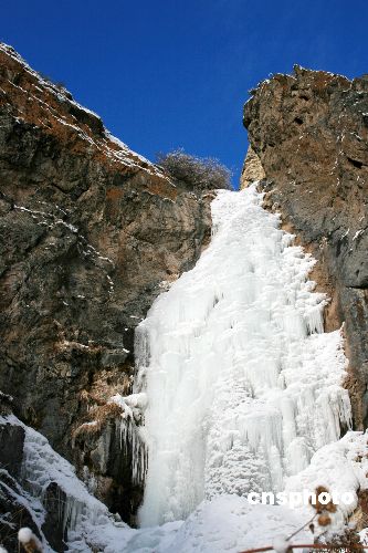 由于持續(xù)降溫,新疆博樂市怪石峪景區(qū)的一處數(shù)十米高的瀑布,凝成了巨大的冰瀑奇觀,場面十分壯觀。中新社發(fā) 杜偉 攝