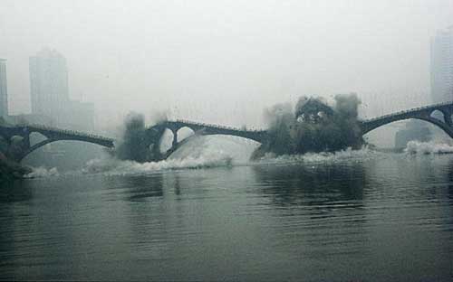 2009年1月5日上午,隨著“轟”的一聲巨響,重慶市合川區(qū)涪江一橋的橋體瞬間沉入了江底,成功地實(shí)施了爆破拆除。1971年建成的涪江一橋曾經(jīng)是國(guó)道212線上的一座跨江大橋,為川渝和當(dāng)?shù)氐慕?jīng)濟(jì)的發(fā)展做出了重要的貢獻(xiàn),在經(jīng)過37年的運(yùn)行后終于完成了它的歷史使命。但重慶市合川區(qū)決定投入資金將在原橋位置上重新在建一座涪江一橋。新的合川涪江一橋設(shè)計(jì)為拱式橋梁,建設(shè)標(biāo)準(zhǔn)為城市主干道Ⅱ級(jí),寬20米,雙向四車道,人行道寬3米,將于2010年12月建成通車,新的合川涪江一橋建成后將極大的改善合川區(qū)南北城現(xiàn)有的交通狀況。