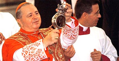 盡管有關(guān)他生活和工作的信息很有限,但他變得出名是因?yàn)榱钊梭@奇的的是他凝固的血液每年都會(huì)變成液體,第一次有記錄的時(shí)間是1389年。他凝固干涸的血液裝在一個(gè)圣骨匣的膠囊里,當(dāng)這些膠囊每年三次被帶到接近他的身體時(shí),血液就會(huì)變成液態(tài),那時(shí)成千上萬(wàn)的人都會(huì)聚集到那不勒斯教堂觀看,在高壇上祈禱的大主教會(huì)用一個(gè)小玻璃瓶裝著干涸的血液,當(dāng)血液液化時(shí),主教會(huì)再次舉起小玻璃瓶以證實(shí)血液確實(shí)液化。這種儀式一年舉行三次,其中最著名的一年一次舉行紀(jì)念圣亞努阿里烏斯尋道的節(jié)日上。一些科學(xué)解釋說(shuō)這種奇怪的液化體不是血而更像是觸變的凍膠,如水合氧化鐵在實(shí)驗(yàn)室中也會(huì)有相同的反應(yīng)。但實(shí)際上干枯的血在特定的日子里液化又增加了神秘性。