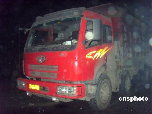 圖為被撞毀的大貨車。中新社發(fā) 翟羽佳 攝