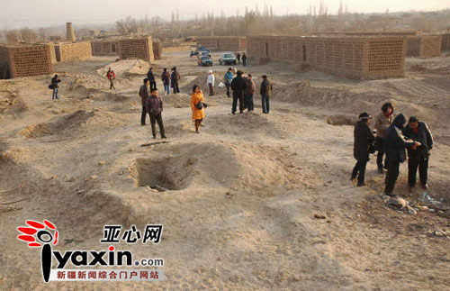 新疆考古所研究工作人員和鄯善縣旅游文物局工作人員對墓葬現(xiàn)場進行初步勘察。