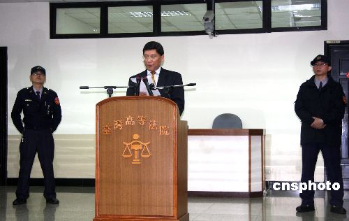 圖為臺灣高等法院發(fā)言人溫耀源在記者會上宣布裁定結果并解釋裁定書。中新社發(fā) 陳立宇 攝