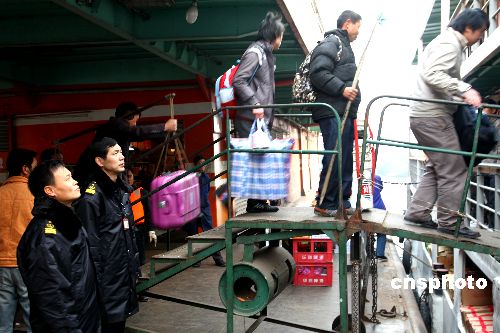 2009年1月8日,返鄉(xiāng)農(nóng)民工乘船進(jìn)川。從湖北宜昌港調(diào)度部門(mén)獲悉,三峽春運(yùn)返鄉(xiāng)農(nóng)民工高潮已提前到來(lái),7日農(nóng)民工進(jìn)川約6000余人,創(chuàng)今年春運(yùn)返鄉(xiāng)農(nóng)民工首個(gè)高峰。中新社發(fā) 望作信 攝