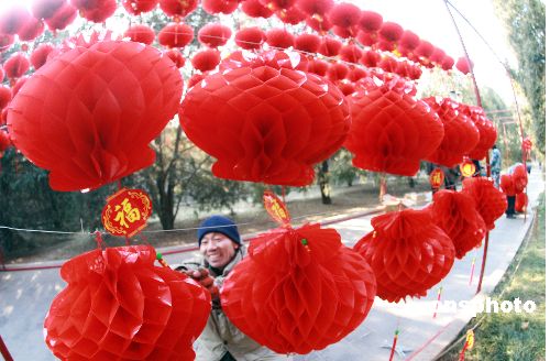 2009年1月9日,隨著春節(jié)臨近,北京地壇公園廟會的環(huán)境布置已進入倒計時階段。眾多喜慶的大紅燈籠紛紛亮相,成為京城迎春的一道靚麗風(fēng)景。