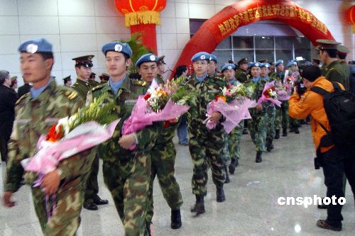 圖:中國首批赴達(dá)爾富爾維和部隊平安回國(2)