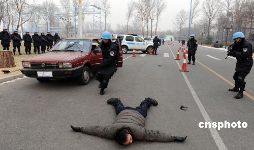 維和防暴隊員進(jìn)行定點查車訓(xùn)練。中新社發(fā) 由永懷 攝
