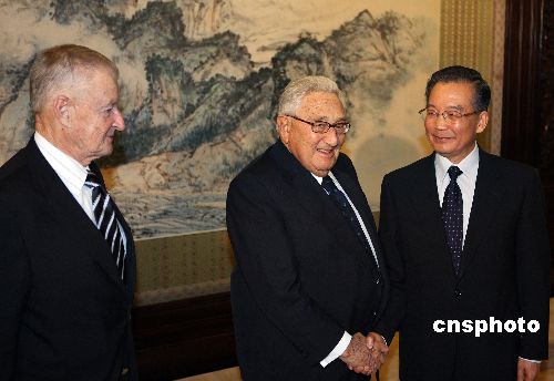 圖:溫家寶會見美國前國務(wù)卿基辛格等美國客人