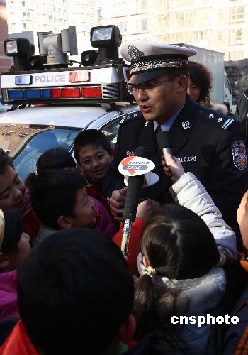 1月14日,北京崇文區(qū)交通支隊(duì)民警為崇文小學(xué)學(xué)生和家長(zhǎng)講授交通安全課。中新社發(fā) 杜洋 攝