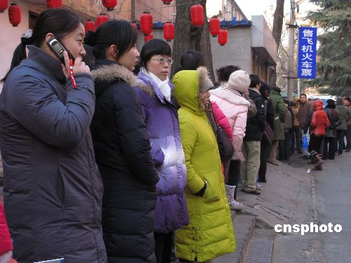 1月15日晨,北京西城區(qū)百萬(wàn)莊南街,一飛機(jī)票火車票銷售點(diǎn)門前,欲購(gòu)票的群眾在嚴(yán)寒中已排起長(zhǎng)龍等待開門營(yíng)業(yè)。春節(jié)前夕,假期返鄉(xiāng)回家過(guò)年客流出現(xiàn)高峰,最為緊俏的火車票一票難求。中新社發(fā) 鄒憲 攝