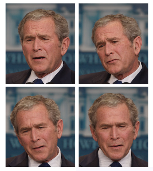 09年1月12日,美國現(xiàn)任總統(tǒng)布什在白宮舉行告別記者會(huì)時(shí)的各異表情。