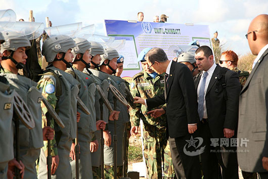 在秘書長視察維和部隊4個小時的緊張行程中,中國掃雷官兵是秘書長此行單獨接見的唯一一支任務(wù)分隊,中國營長是唯一一個被單獨接見的維和分隊指揮官。