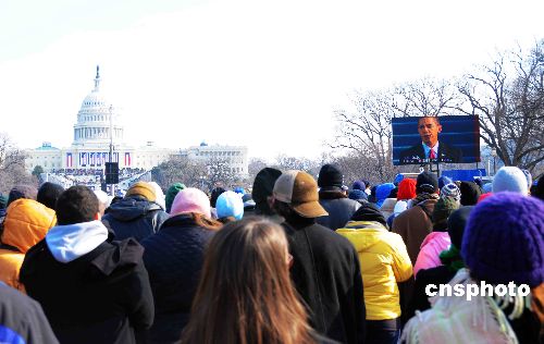 一月二十日,美國(guó)第四十四任總統(tǒng)奧巴馬在國(guó)會(huì)山前宣誓就職。來(lái)自全美和世界各地的二百多萬(wàn)人聚集華盛頓國(guó)家大草地觀看了這一盛大的就職典禮。