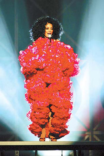 在拉斯維加斯舉行的美國公告牌音樂頒獎禮上,老牌歌手戴安娜·羅斯身著鮮花裝扮“紅色康乃馨”放聲高歌。