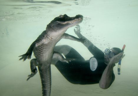 圖:美國(guó)男子無(wú)任何保護(hù)措施“與鱷共舞”(2)